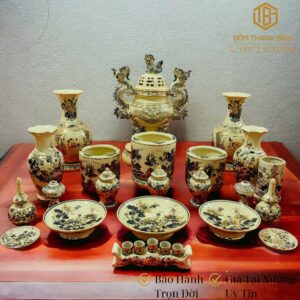 Bộ Đồ Thờ Men Rạn Vẽ Vàng 24K 22 Món